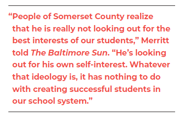 In early August, Superintendent Wright, in a letter to the school board chair, threatened to withhold funding and unseat board members if they fired Tasker-Mitchell. Lankford already had a replacement in line (declined by Wright) with former Dorchester County Superintendent David Bromwell.