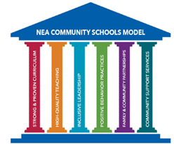 The community schools’ pillars are the supporting practices which allow for positive outcomes for students. To learn more about each pillar, check out NEA’s Six Pillars of Community Schools Toolkit.