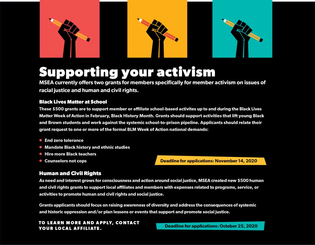 Finally, the nation is catching up with what many have long known—you can’t say “all men are created equal” and underserve and underfund education. It’s true, MSEA has a long tradition of rallying for and helping to pass equitable funding and strong supports for students and educators through statewide funding like the Blueprint, opposing dangerous standardized tests that for so many years left strong students behind because of the white-centered contexts, and strongly advocating for cultural competence, restorative practices, fair discipline policies, reducing suspensions, and equitable opportunities for all students.