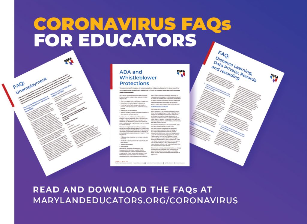 The curated resources range in topic area from how to best engage students virtually to general strategies for using technology and from self-care for educators to appropriately addressing the social-emotional needs of students during this time. Find it soon at marylandeducators.org/coronavirus.