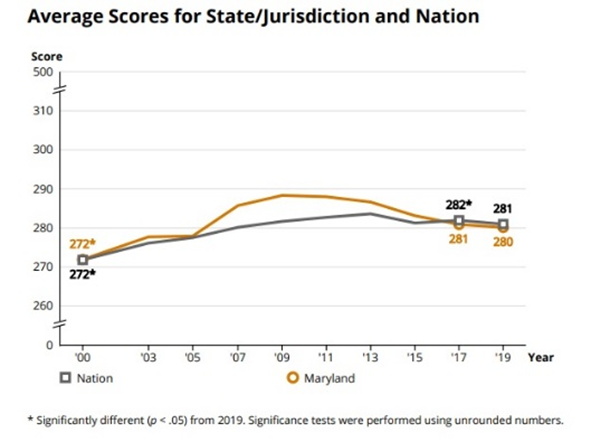 If Maryland schools were ever mediocre, it was in 2003. America’s Gradebook ranked Maryland as 31st in the nation for that year, despite Maryland ranking 17th in the nation for most per pupil funding.